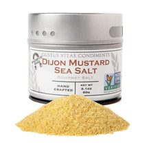 - 1 Tin Dijon Mustard Sea Salt. Ingredients: California Sea Salt, Dijon Mustard (Distilled Vinegar, Salt, Acid, Spices), Maltodextrin, Food Starch, Natural Flavor.